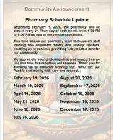 Effective February 1, 2026, the pharmacy will be closed every 3rd Thursday of each month from 1pm โ 5pm.